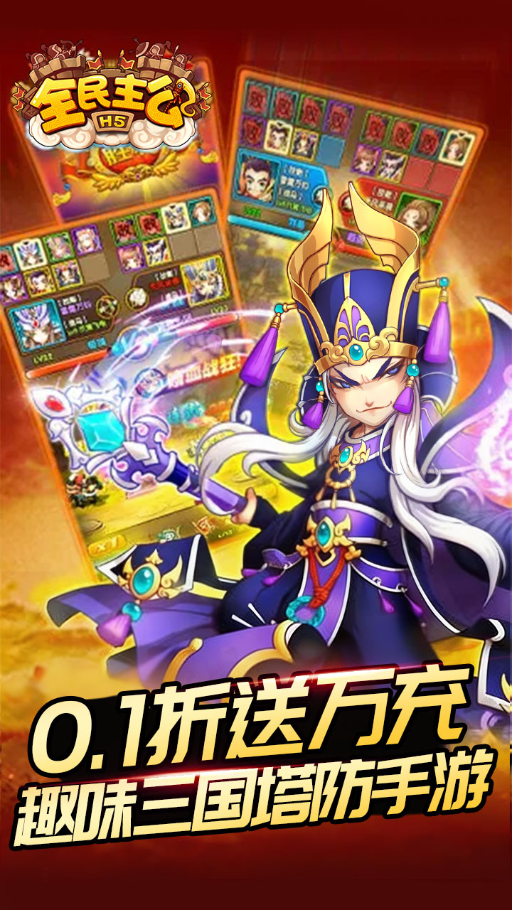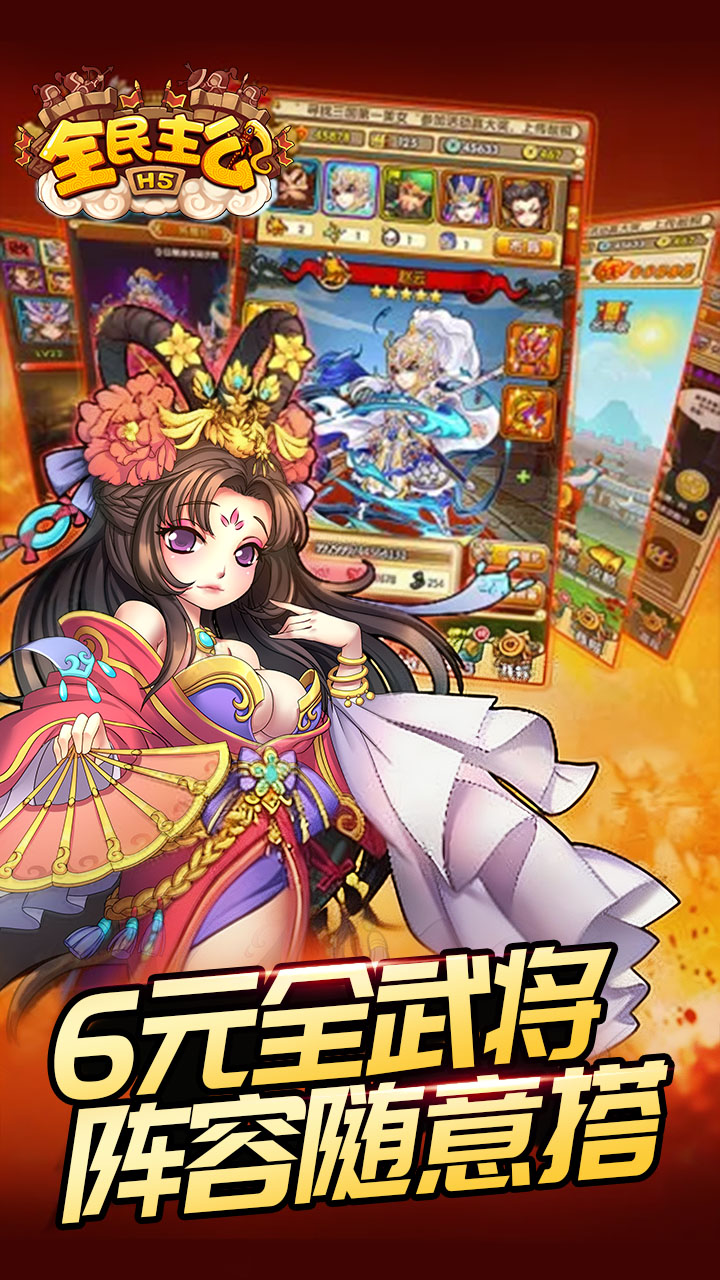 《全民主公 H5》是一款国风 Q 版画风的全新三国策略塔防手游,以经典三国乱世为背景,在传统塔防核心玩法上,融合武将卡牌养成、策略布阵、国战闯关等多元趣味玩法,打造沉浸式三国争霸体验。游戏拥有精致灵动的二次元国风立绘,貂蝉、关羽、诸葛亮等百位三国名将悉数登场,萌趣画风搭配华丽技能特效,每场攻防战局都视觉拉满。武将羁绊体系完善,6 元即可解锁全武将自由收集,海量武将随心搭配专属作战阵容,策略布阵玩转攻防对局,用智谋排兵布阵,驰骋三国沙场。